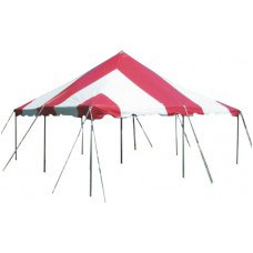 20x20 Red and White Pole Tent is great for back yard BBQ, graduation, family reunions or small parties. This beautiful tent will hold up to 6 8' banquet tables and has plenty of room to host a 40 person sit down dinner. Also this tent will be capable of holding up to 65 people for an informal event.